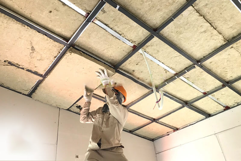 Trần thạch cao kết hợp bông khoáng: giúp giảm nhiệt, chống cháy, đồng thời tạo thẩm mỹ cao.